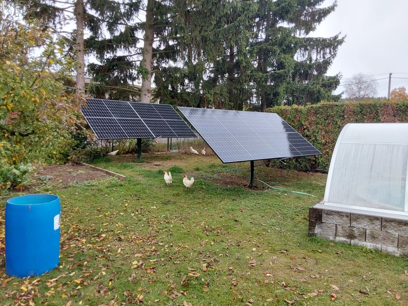 Monokrystalické nebo polykrystalické panely, s možností integrace do střechy nebo pozemní konstrukce.